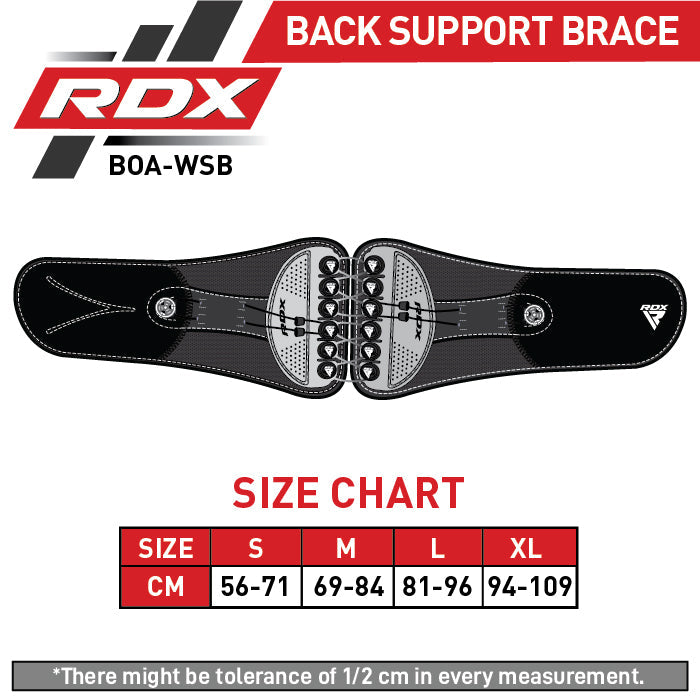 Strengthen your core and make rehabilitation process easy with RDX core support belt. Made keeping in mind people with lower back pain and chronic back pain issues such as Herniated Disc, Sciatica and Scoliosis, RDX back braces are comfortable and help set up a controlled environment. It fast tracks healing, decreases risk of degenerative diseases and encourages activity by offering better postural alignment. Elasticated back support waistbelt features a strategically placed lumbar pad that cushions the lower back, stabilizes the core and effectively shifts pressure off the spine “ which is a key factor in relieving back pain. Designed with Futuristic FlexDial Technology, the back support belt features two adjustable dials on both sides to help you get the right level of compression for localized therapy by building compression centred on the lower lumbar vertebrae. It also neutralizes the spinal column for superior lumbar support during lifting movements and helps prevent lower back injuries.Strong-hold Hook-and-Loop closure back belt provides ease of use so you can put it on and take it off without relying on another person. Suitable for individuals working out alone at their home gyms, without a training partner to help with the belt adjustment. The secure closure system also allows user to personalize the fit for budge-proof wear during intense activities. The black back support belt can be adjusted to 4 different sizes (S-XL), providing suitable wear for adult men and women with different waist circumferences “ preferably between 56cm and 109 cm.Made for fully professional medical level back support, our back braces are manufactured from soft nylon for comfort as well as sturdy polyester and high-grade plastic parts for longevity RDX back braces. Lightweight black support belt with breathable mesh structure promotes air ventilation to keep body cool and sweat-free; suitable for everyday wear underneath clothes.